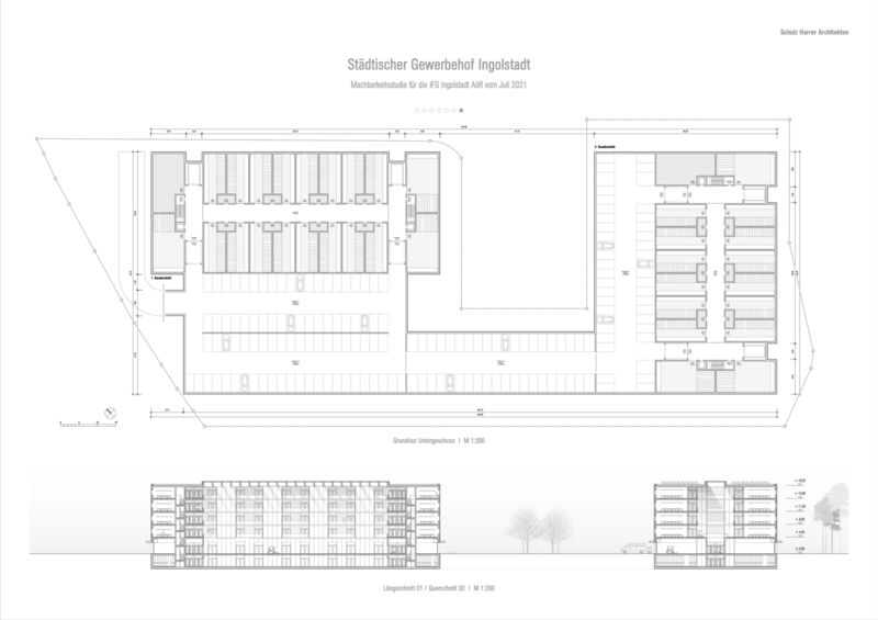 Lieferhof angeschlossen. In den Untergeschossen befinden sich umfangreiche Lagerflächen und Tiefgaragen für herkömmliche PKW Stellplätze. Über die geplanten, großflächigen Photovoltaik Anlagen auf